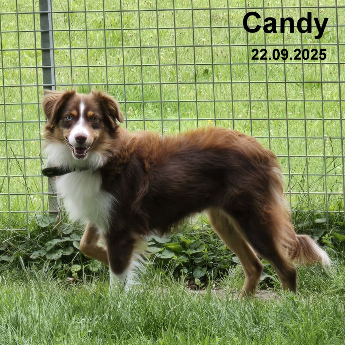 Candy---- Rasse: Miniature Australien Shepard---- Schulterhöhe: ca. 40 cm---- Geschlecht: weiblich---- geboren: 2024---- Endlich können wir Candy in die Vermittlung aufnehmen. Angekommen ist Candy mit ihren 3 Welpen in einem total verängstigsten Zustand. Die Welpen haben bereits ein Zuhause gefunden. Candy selbst war vollkommen überfordert mit der gesamten Situation. Lange habe wir gebraucht, bis sie sich anfassen ließ und wir mit ihr auf eine Koppel gehen konnten. Jetzt ist sie täglich auf ihrem Freilauf. Noch immer zeigt sie Unsicherheit bei allem Fremden. Sie läuft ganz gut an der Leine, muss aber noch weiter trainiert werden. Vom Verhalten ist Candy ein typischer Aussi - sehr aufmerksam, sehr lernwillig, sehr gelehrig und sehr agil. Es sind "Arbeitstiere" - Hunde die eine sinnvolle Beschäftigung brauchen. Für sie suchen wir nur RASSEERFAHRENE Menschen, die feinfühlig genug sind und wissen, das Vertrauen erst aufgebaut werden muss. Wenn Sie Interesse an Candy haben nehmen Sie sich bitte Zeit, um sie kennenzulernen. Bitte vereinbaren Sie einen telefonischen Termin mit uns.