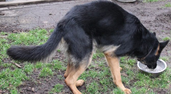 Silvester – mit all seinen Raketen und lauten Böllern – und Sirius war auf dem Grundstück an einer Kette angebunden und konnte nicht fliehen. Was müssen das für furchtbare Tage für ihn gewesen sein! Am 06.01.2025 wurde er dann zum Glück sichergestellt und zu uns ins Tierheim gebracht. Sein Anblick trieb uns Tränen in die Augen: abgemagert, verstört und keine Muskulatur. Sofort stürzte er sich auf sein Futter. Seine schwachen Hinterbeine zitterten vor Aufregung. 5 Minuten später kam alles als Durchfall wieder raus. Was für ein Martyrium muss er erlebt haben.